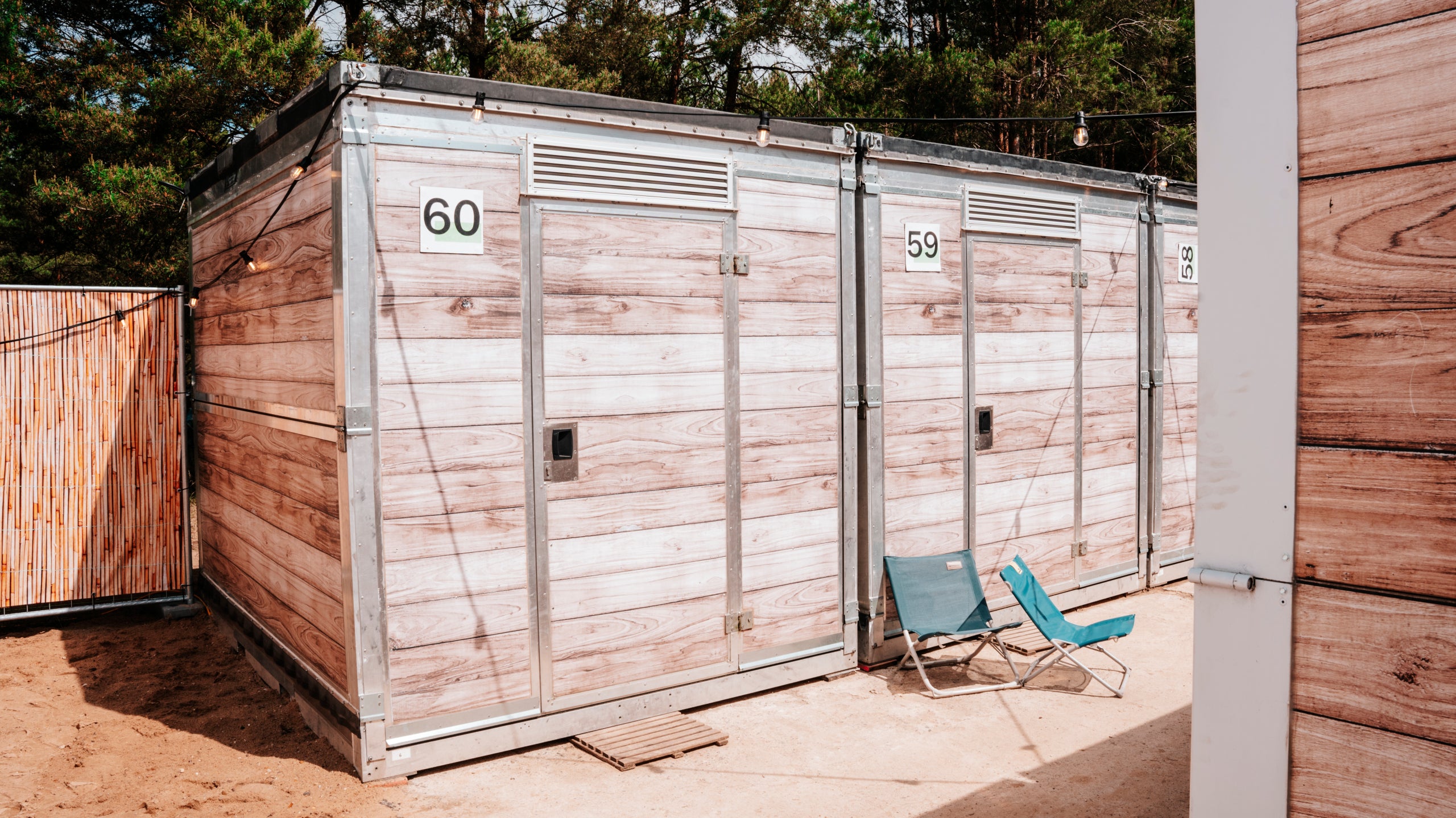 Constant rain? Runny nights on a sleeping mat? No electricity? All that's over now – with your lockable festival lodge! This lodge offers everything a festival-goer could want: comfortable beds with mattresses and proper bedding, electricity, lighting, shelves, and clothes hooks. In this lodge, you'll not only weather any storm, but you can also start the next festival day refreshed and ready to go.